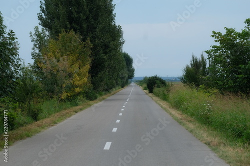 Fototapeta premium Tree lined country road, Romania