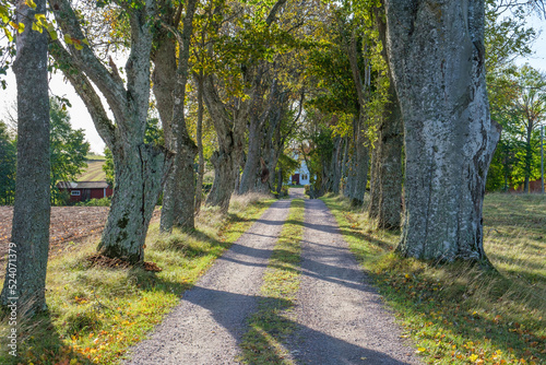 © Lars Johansson, Fototapeta premium Tree lined gravel road to a house in the countryside