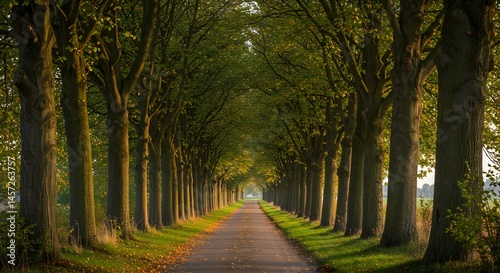 © arazka, Naklejka premium Tree Lined Road with Sunlight