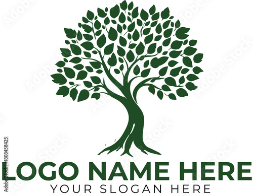 Obraz premium Tree logo vector with leafy canopy and thick trunk for nature, sustainability, wellness, or growth branding