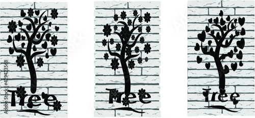 © Ivan, Naklejka premium tree on a brick wall black and white