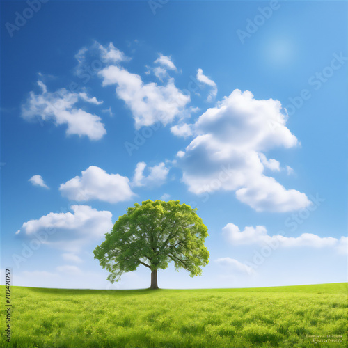© Maizal, Fototapeta premium tree on a field with blue sky background