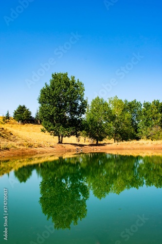 © Erich, Fototapeta premium Tree on a lake shore with reflection on the water surface