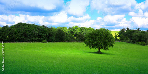 © Swetlana Wall, Naklejka premium Tree on green meadow.