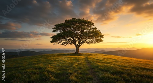 © St Mmh, Obraz premium Tree on Hill at Sunset