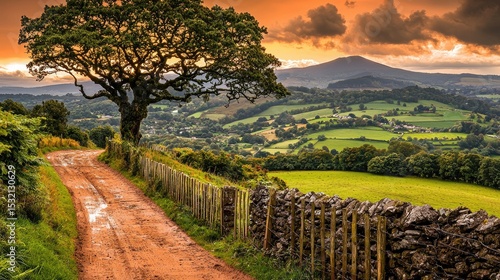 © rahmi, Obraz premium Tree on Hillside with Path and Fence
