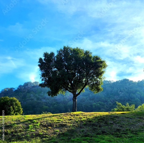 © YI, Obraz premium tree on the hill blue sky
