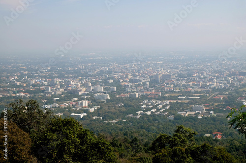 Obraz premium tree on the mountain at sunset sky cloud light sun landscape with view city...