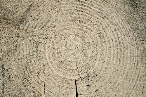 Fototapeta premium Tree rings old weathered wood texture with the cross section of a cut log