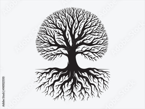 Naklejka premium Tree Roots Silhouette with Detailed Underground Branches for Nature, Growth, and Spiritual Connection Themes