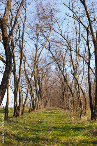 Fototapeta premium Tree rows in the spring forest