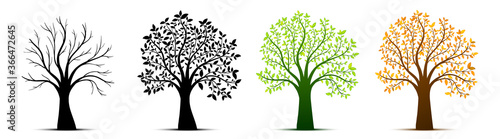 © maribom, Obraz premium Tree seasons nature background. Vector illustration