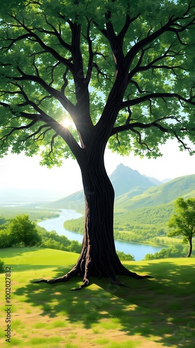 © meOtto, Obraz premium Tree Shade, Mountain River View