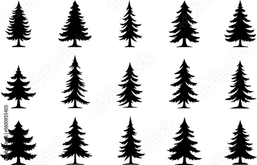 Naklejka premium Tree Silhouette Collection – Pine, Fir & Deciduous Tree Icons vector bundle