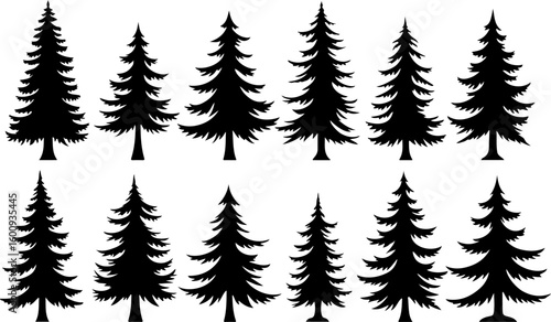 Naklejka premium Tree Silhouette Collection – Pine, Fir & Deciduous Tree Icons vector bundle