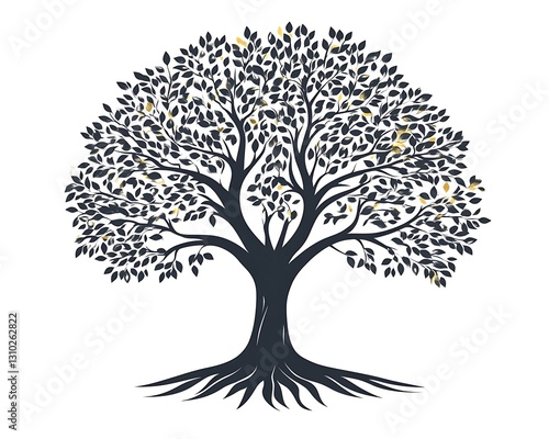 Fototapeta premium Tree silhouette leaves, roots, sky backdrop