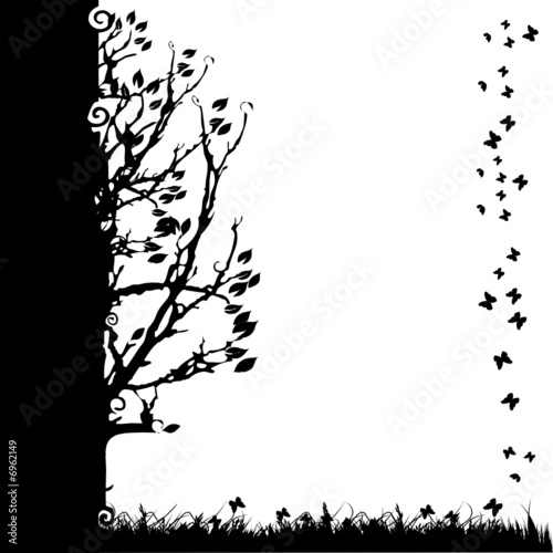 © Kudryashka, Naklejka premium Tree silhouette old, season, white and black background