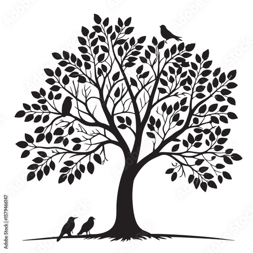 © Chinu Akter, Obraz premium tree silhouette vector