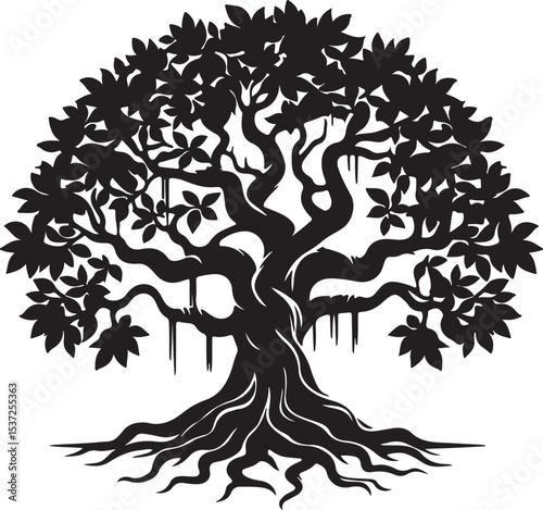 Obraz premium Tree Silhouette Vector | Large Oak Tree Logo Design