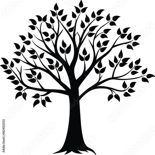 Fototapeta premium Tree silhouette vector. Tree with roots. Tree logo, icon vector illustration.. black and white tree.