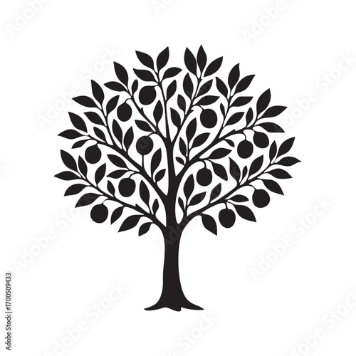 © Ema, Fototapeta premium Tree silhouette with leaves vector illustration.