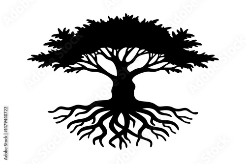 © QBeStock, Obraz premium Tree Silhouette with Roots Forming a Mandala, Mandala Tree Design, Tree with Mandala Roots Illustration, On Transparent Background
