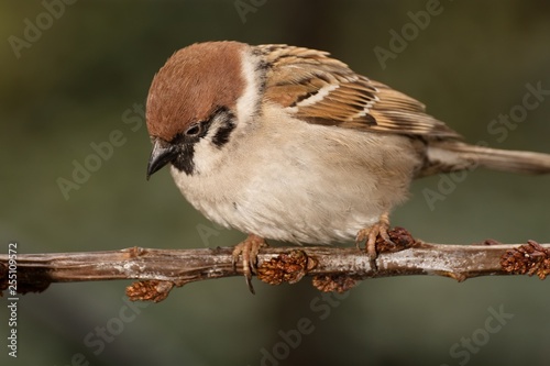 © Milan, Naklejka premium Tree sparrow (Passer montanus) on a branch. East Moravia. Europe.