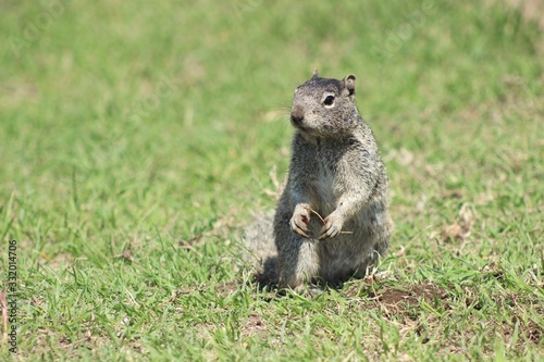 © SilviaCZaninovich, Naklejka premium Tree squirrel standing on the grass, in Cholula, Mexico