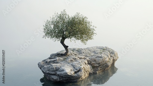© Angelina, Fototapeta premium Tree standing alone in the fog, embodying mysticism and the unknown, merging nature with spirituality, undergoing transition and transformation, fading into oblivion. Illustration