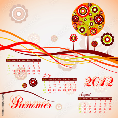 © Tolchik, Fototapeta premium Tree summer calendar 2012, vector