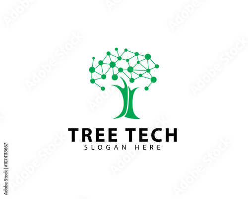 Obraz premium Tree Tech or Tree Science Logo Template Design Vector, Emblem, Design Concept, Creative Symbol, Icon