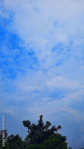© Marthina, Obraz premium Tree Top under dramatic blue sky and clouds