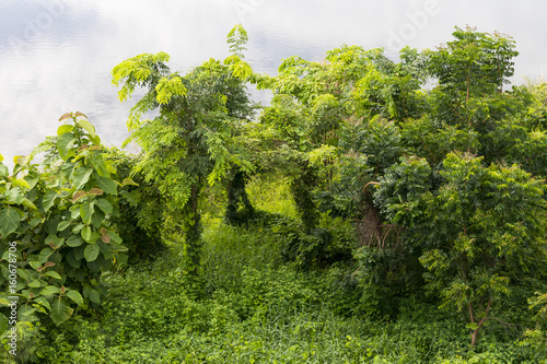 © kaentian, Fototapeta premium Tree top with water reflecting clouds.