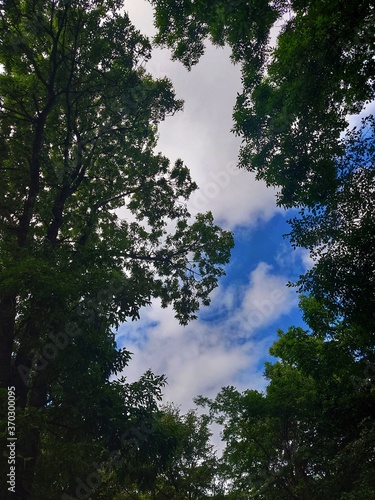 © KissCat, Obraz premium Tree tops on a cloudy sky background