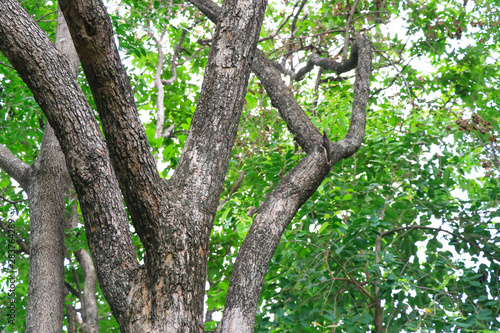 © Narin, Obraz premium Tree trunk and green blurred background.