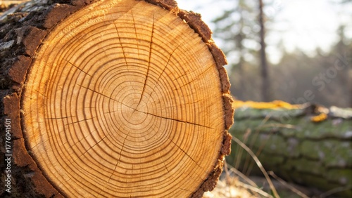 Naklejka premium Tree trunk cross section reveals global temperature trends through its rings