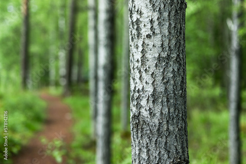 Obraz premium Tree trunk in a green forest