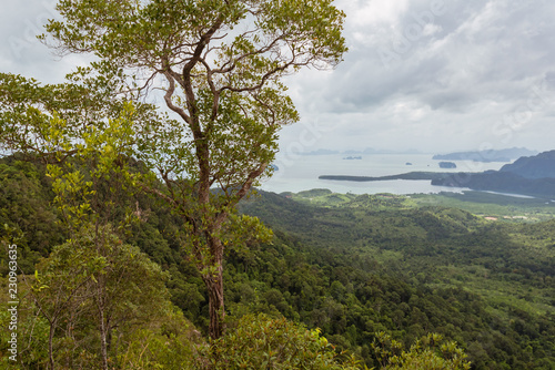 © Bob, Fototapeta premium tree trunk in green forest over the sea