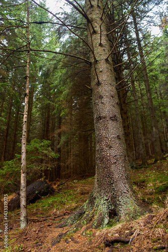 Fototapeta premium Tree trunk in mossy forest