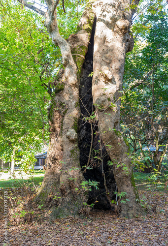 © Giorgio G, Naklejka premium Tree trunk split in half in Italy
