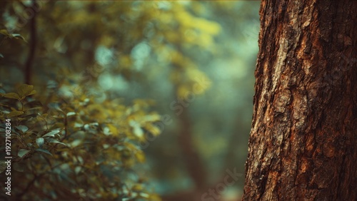 © Imagehub, Obraz premium Tree trunk with forest background