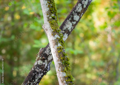 © Milla Rasila, Obraz premium Tree trunks crossing in the forest