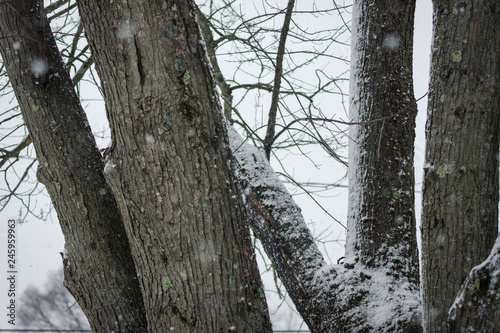Fototapeta premium Tree trunks in a snow storm