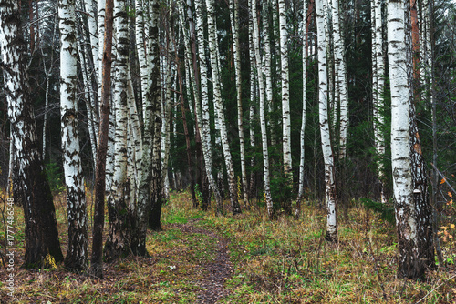 Obraz premium Tree trunks in the autumn forest