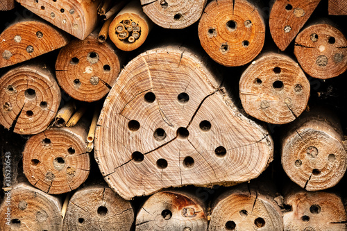 Obraz premium Tree trunks with holes background.