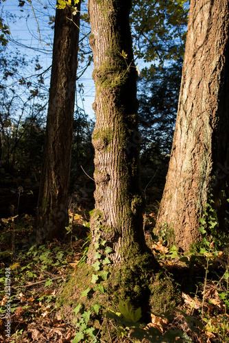 Obraz premium tree trunks with leaves and moss