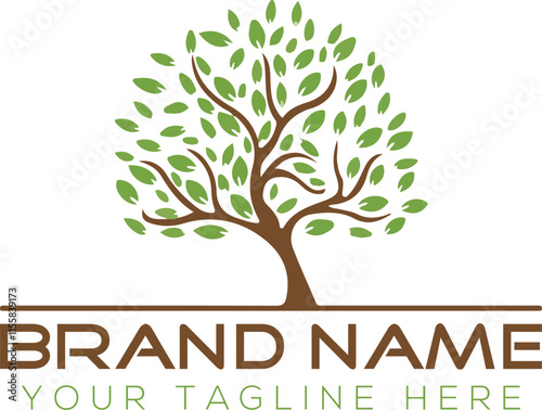 © Masud, Fototapeta premium Tree Vector illustration. Tree with branch leaves symbols or signs. Emblem isolated on white background, Flat style for graphic and