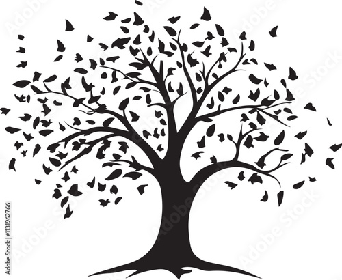 © Muhammad Irfan, Fototapeta premium Tree with bird black silhouette vector file graphic design