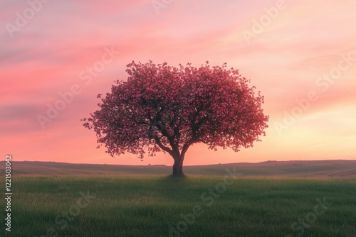 © Thomas, Obraz premium Tree with blooming branches, framed by a dreamy setting