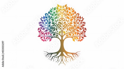 © sungedi, Naklejka premium tree with colorful watercolor leaf